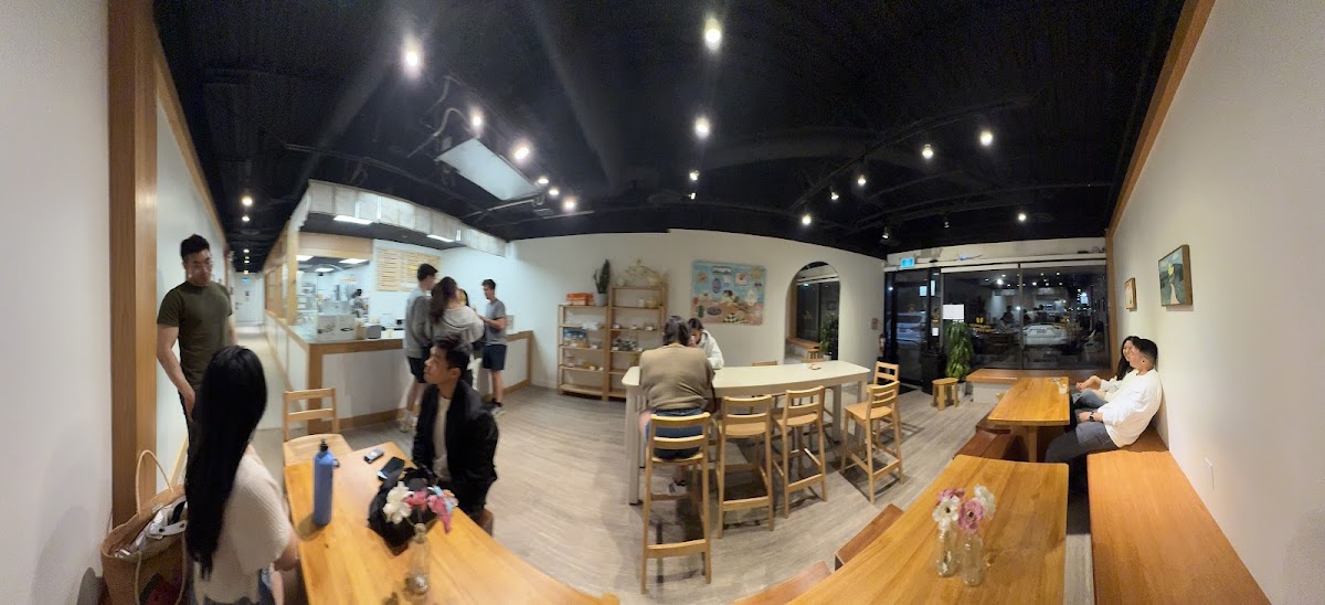 The atmosphere is casual but thoughtfully arranged, lending a cool, artsy vibe with a noticeable chill from strong air conditioning — a welcome contrast on warmer days. The spot fills up steadily by mid-morning, so arriving earlier on a weekend will make parking and seating easier, especially before the lunchtime crowd arrives.